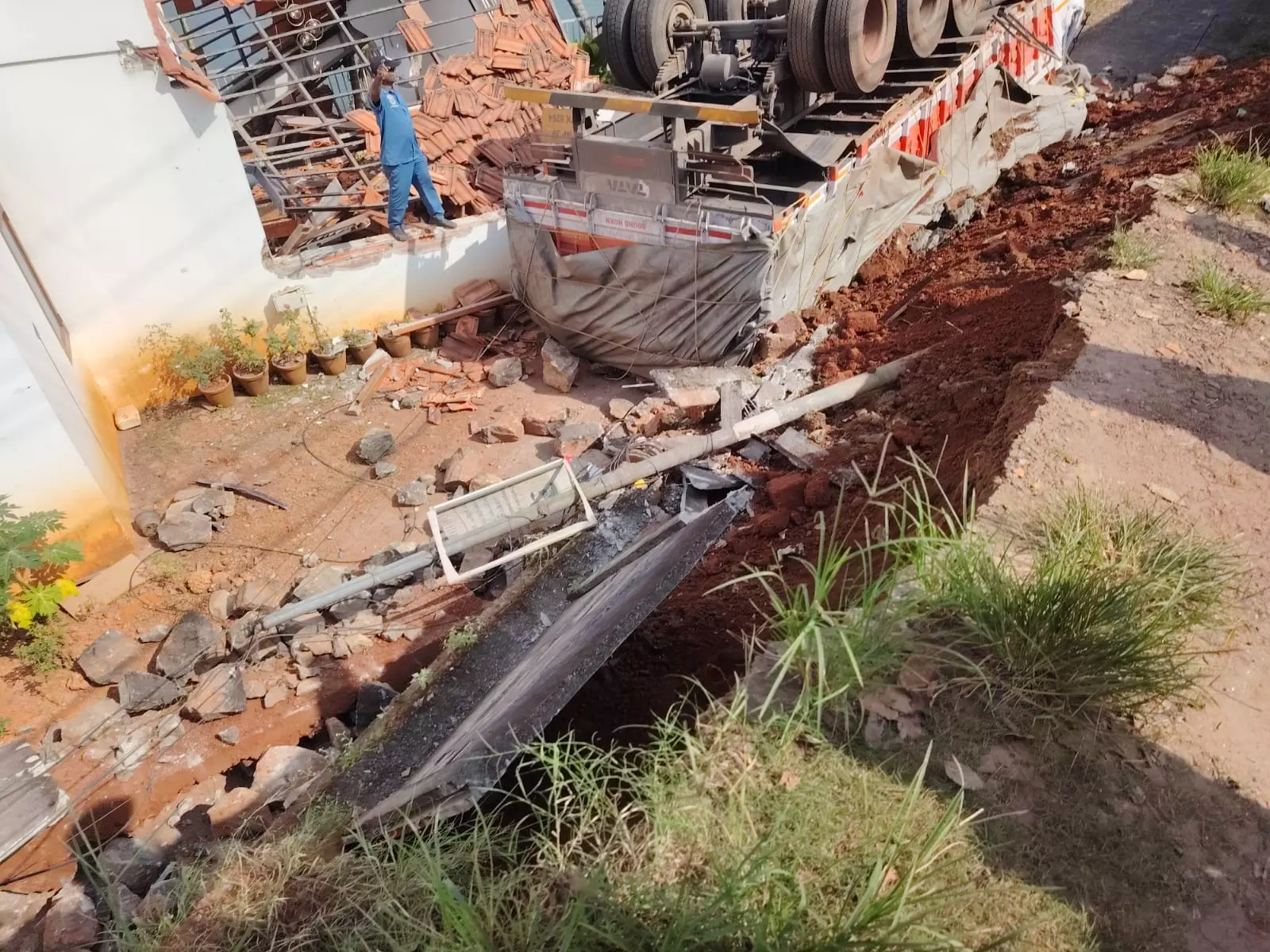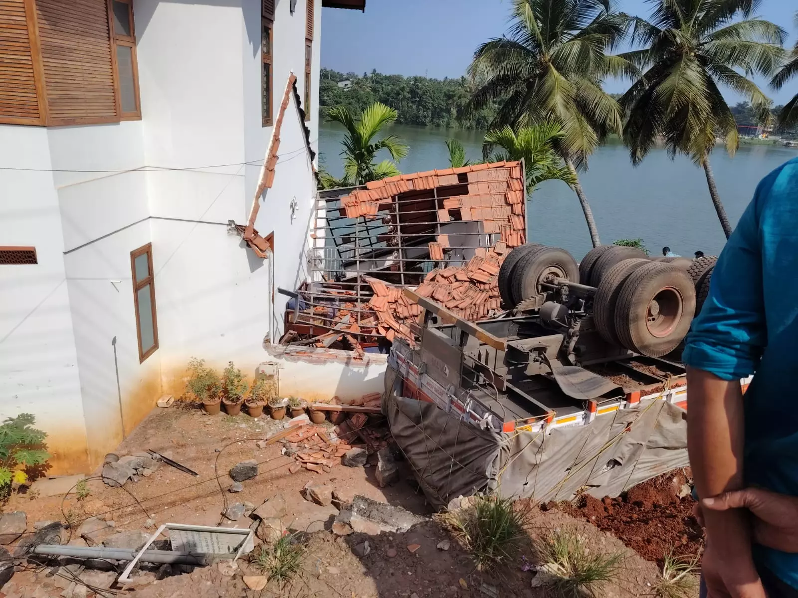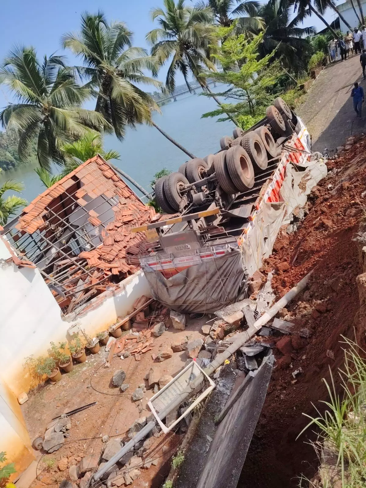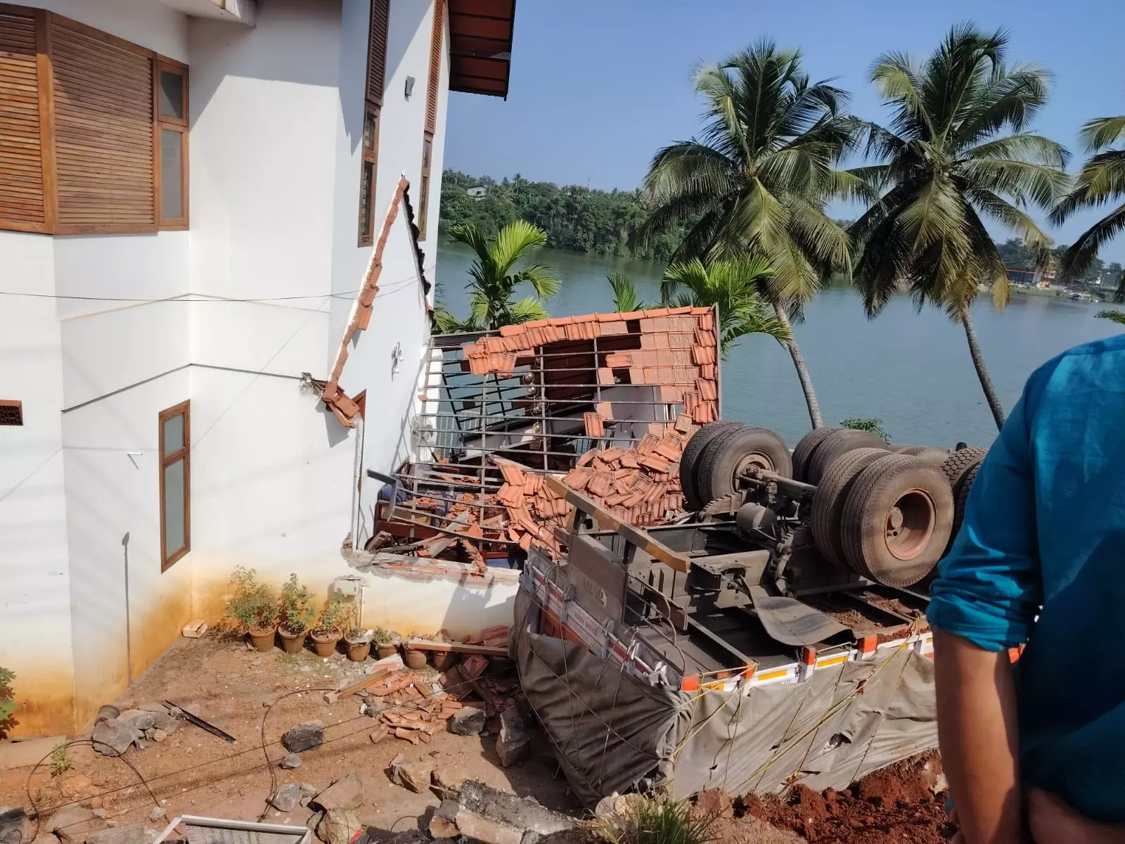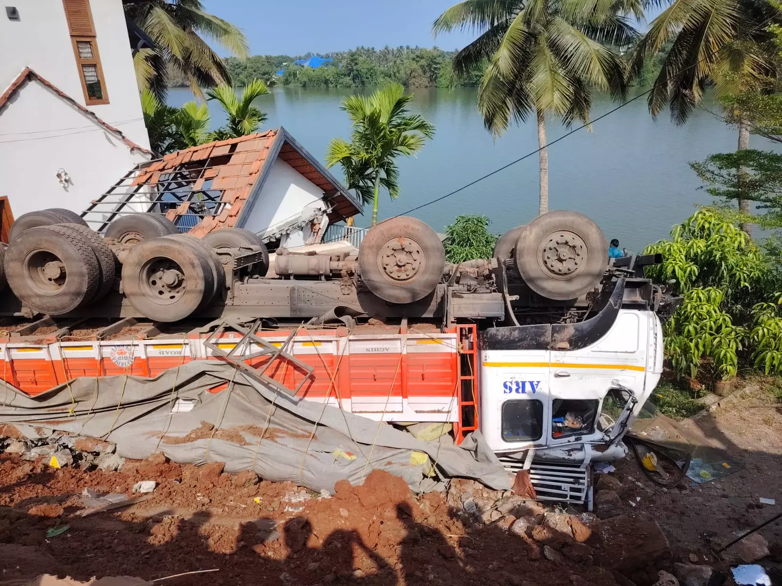 സിമന്റ് ലോറി വീടിന് മുകളിലേക്ക് മറിഞ്ഞു