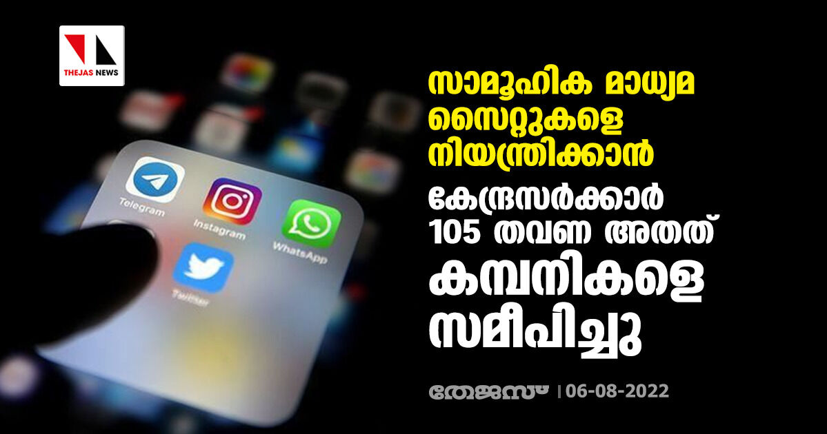 സാമൂഹിക മാധ്യമ സൈറ്റുകളെ നിയന്ത്രിക്കാൻ കേന്ദ്രസര്ക്കാര് 105 തവണ അതത് കമ്പനികളെ സമീപിച്ചു