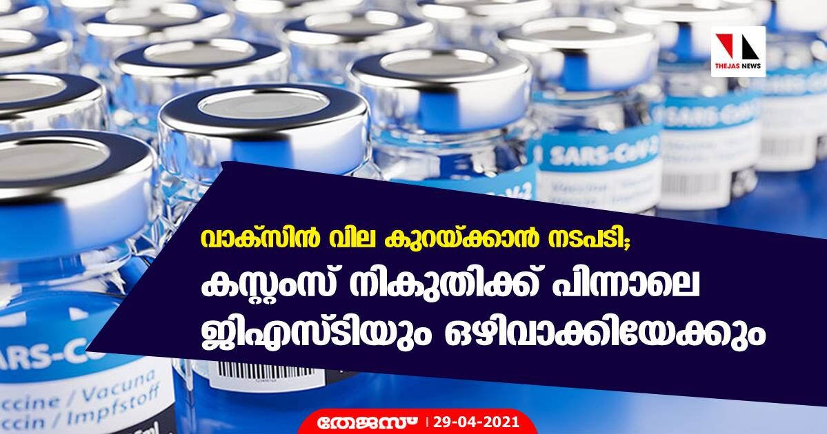 വാക്സിന് വില കുറയ്ക്കാന് നടപടി;കസ്റ്റംസ് നികുതിക്ക് പിന്നാലെ ജിഎസ്ടിയും ഒഴിവാക്കിയേക്കും