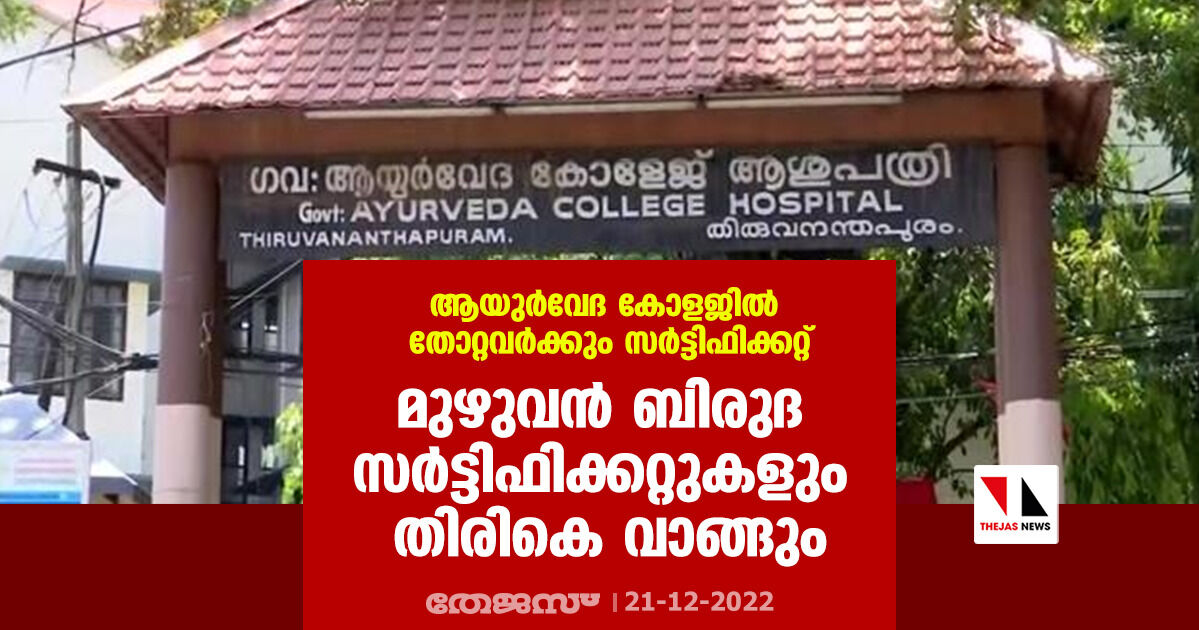 ആയുര്വേദ കോളജില് തോറ്റവര്ക്കും സര്ട്ടിഫിക്കറ്റ്; മുഴുവന് ബിരുദ സര്ട്ടിഫിക്കറ്റുകളും തിരികെ വാങ്ങും