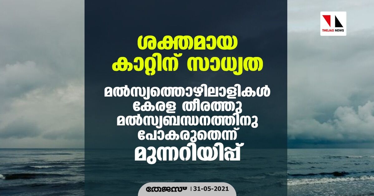 ശക്തമായ കാറ്റിന് സാധ്യത; മല്സ്യത്തൊഴിലാളികള് കേരള തീരത്തു മല്സ്യബന്ധനത്തിനു പോകരുതെന്ന് മുന്നറിയിപ്പ്