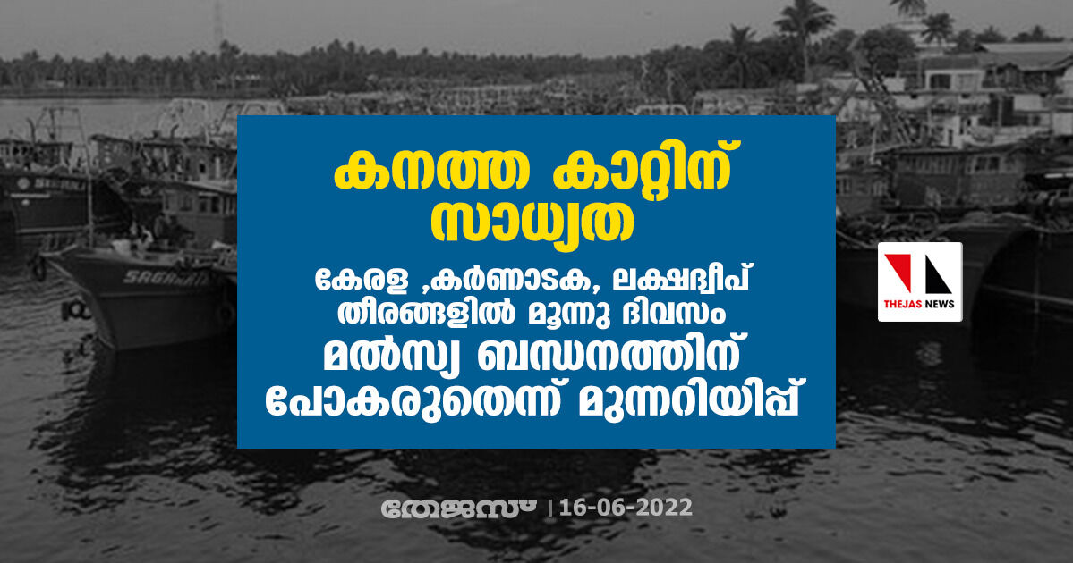 കനത്ത കാറ്റിന് സാധ്യത ; കേരള ,കര്ണാടക,ലക്ഷദ്വീപ് തീരങ്ങളില് മൂന്നു ദിവസം മല്സ്യ ബന്ധനത്തിന് പോകരുതെന്ന് മുന്നറിയിപ്പ്
