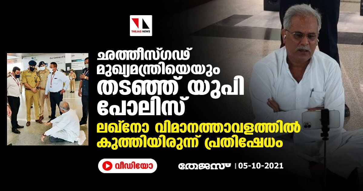 ഛത്തീസ്ഗഢ് മുഖ്യമന്ത്രിയെയും തടഞ്ഞ് യുപി പോലിസ്; ലഖ്നോ വിമാനത്താവളത്തില് കുത്തിയിരുന്ന് പ്രതിഷേധം (വീഡിയോ)