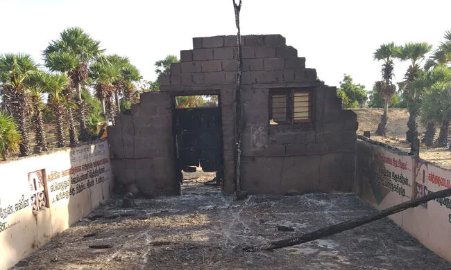 തമിഴ്നാട്ടില് ക്രിസ്ത്യന് പള്ളി കത്തിനശിച്ച നിലയില്