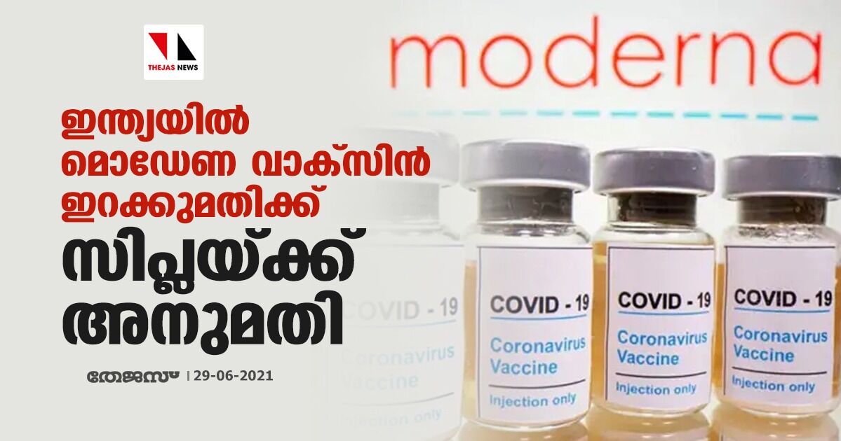 ഇന്ത്യയില് മൊഡേണ വാക്സിന് ഇറക്കുമതിക്ക് സിപ്ലയ്ക്ക് അനുമതി