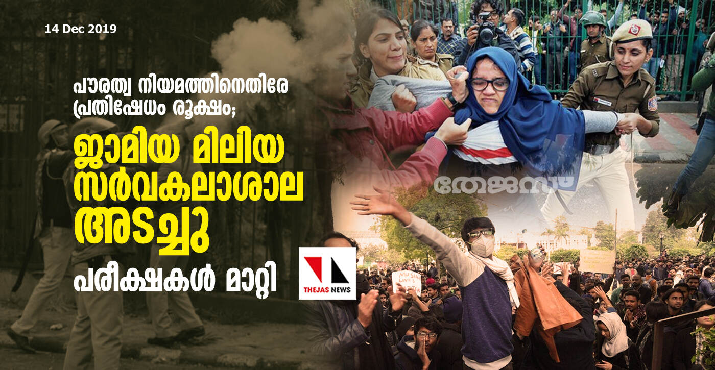 പൗരത്വ നിയമത്തിനെതിരേ പ്രതിഷേധം രൂക്ഷം; ജാമിയ മിലിയ സര്വകലാശാല അടച്ചു, പരീക്ഷകള് മാറ്റി