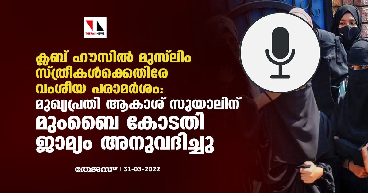 ക്ലബ് ഹൗസില് മുസ് ലിം സ്ത്രീകള്ക്കെതിരേ വംശീയ പരാമര്ശം: മുഖ്യപ്രതി ആകാശ് സുയാലിന് മുംബൈ കോടതി ജാമ്യം അനുവദിച്ചു