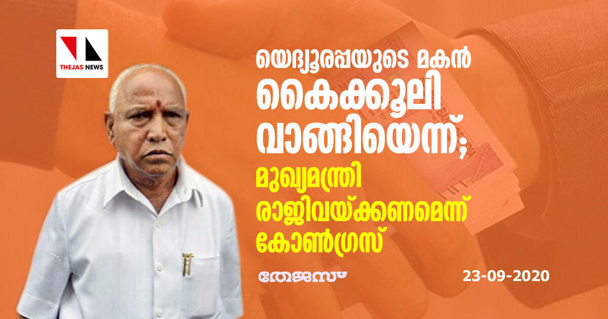 യെദ്യൂരപ്പയുടെ മകന് കൈക്കൂലി വാങ്ങിയെന്ന്; മുഖ്യമന്ത്രി രാജിവയ്ക്കണമെന്ന് കോണ്ഗ്രസ്