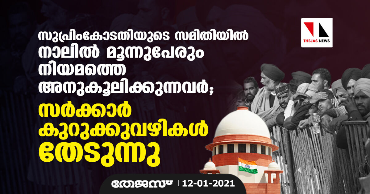 സുപ്രിംകോടതിയുടെ സമിതിയില് നാലില് മൂന്നുപേരും നിയമത്തെ അനുകൂലിക്കുന്നവര്; സര്ക്കാര് കുറുക്കുവഴികള് തേടുന്നു