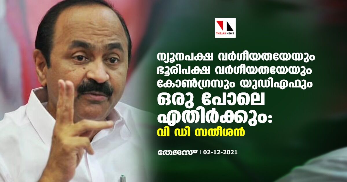 ന്യൂനപക്ഷ വര്ഗീയതയേയും ഭൂരിപക്ഷ വര്ഗീയതയേയും കോണ്ഗ്രസും യുഡിഎഫും ഒരു പോലെ എതിര്ക്കും: വി ഡി സതീശൻ