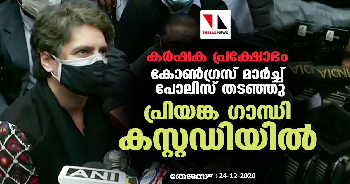 കര്ഷക പ്രക്ഷോഭം: കോണ്ഗ്രസ് മാര്ച്ച് പോലിസ് തടഞ്ഞു; പ്രിയങ്ക ഗാന്ധി കസ്റ്റഡിയില്