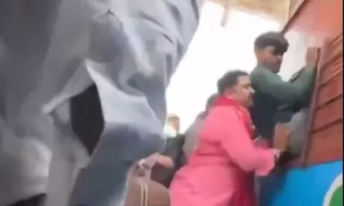 ട്രെയ്ന് വിന്ഡോയിലൂടെ ആളെ കയറ്റി പോര്ട്ടര്: വീഡിയോ വൈറലാവുന്നു
