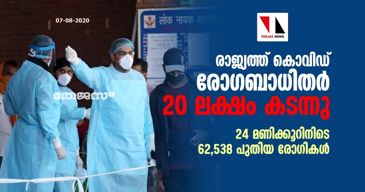 രാജ്യത്ത് കൊവിഡ് രോഗബാധിതര് 20 ലക്ഷം കടന്നു, 24 മണിക്കൂറിനിടെ 62,538 പുതിയ രോഗികള്