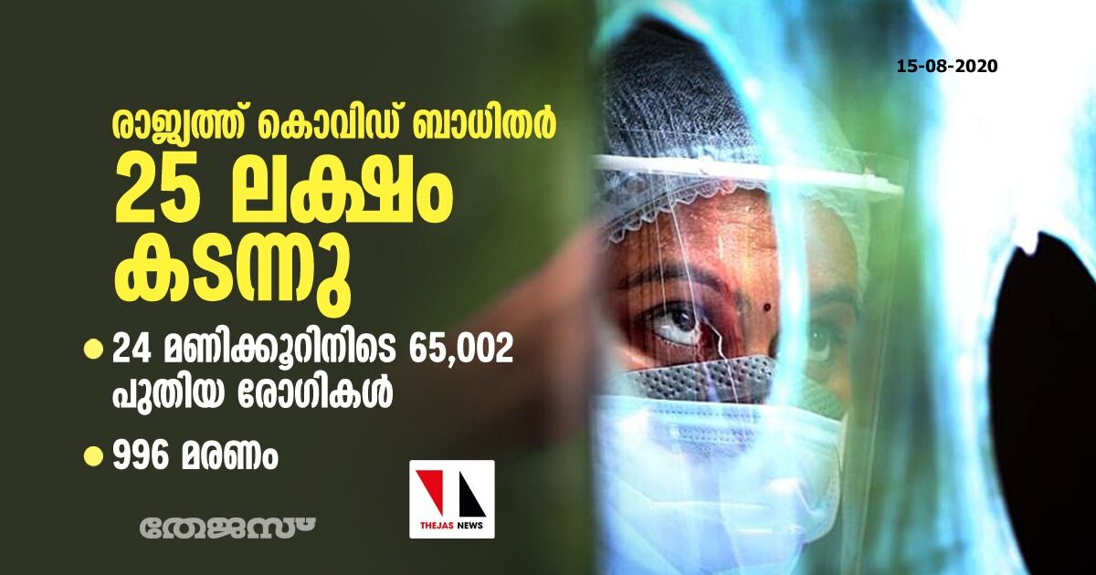 രാജ്യത്ത് കൊവിഡ് ബാധിതര് 25 ലക്ഷം കടന്നു; 24 മണിക്കൂറിനിടെ 65,002 പുതിയ രോഗികള്; 996 മരണം