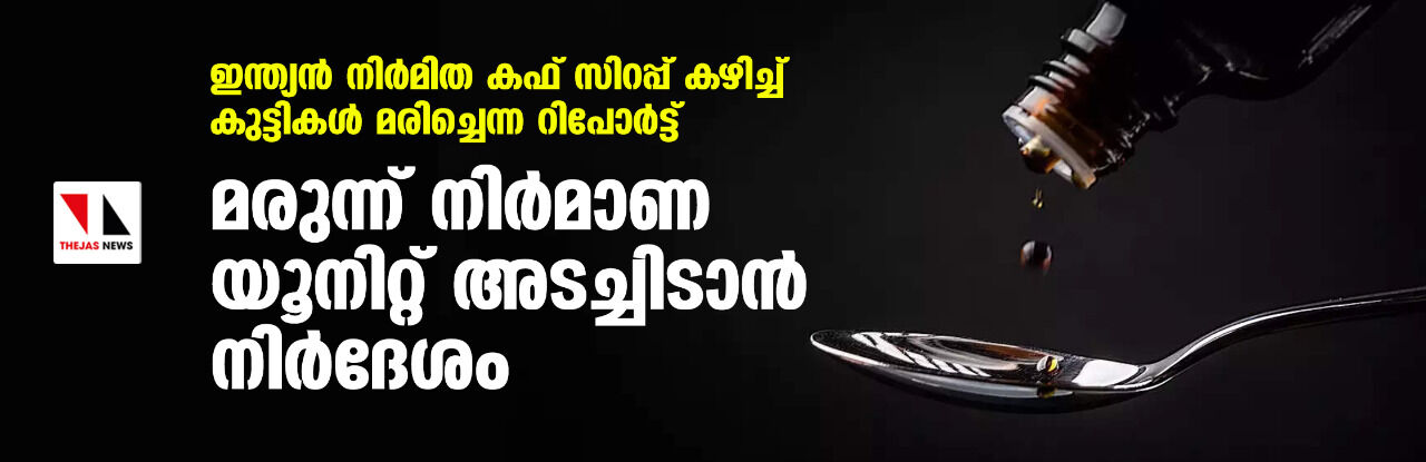 ഇന്ത്യന് നിര്മിത കഫ് സിറപ്പ് കഴിച്ച് കുട്ടികള് മരിച്ചെന്ന റിപോര്ട്ട്: മരുന്ന് നിര്മാണ യൂനിറ്റ് അടച്ചിടാന് നിര്ദേശം