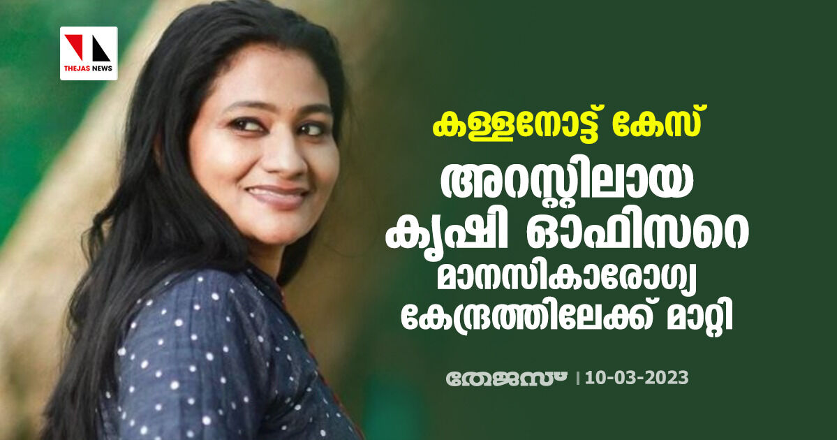 കള്ളനോട്ട് കേസ്: അറസ്റ്റിലായ കൃഷി ഓഫിസറെ മാനസികാരോഗ്യ കേന്ദ്രത്തിലേക്ക് മാറ്റി