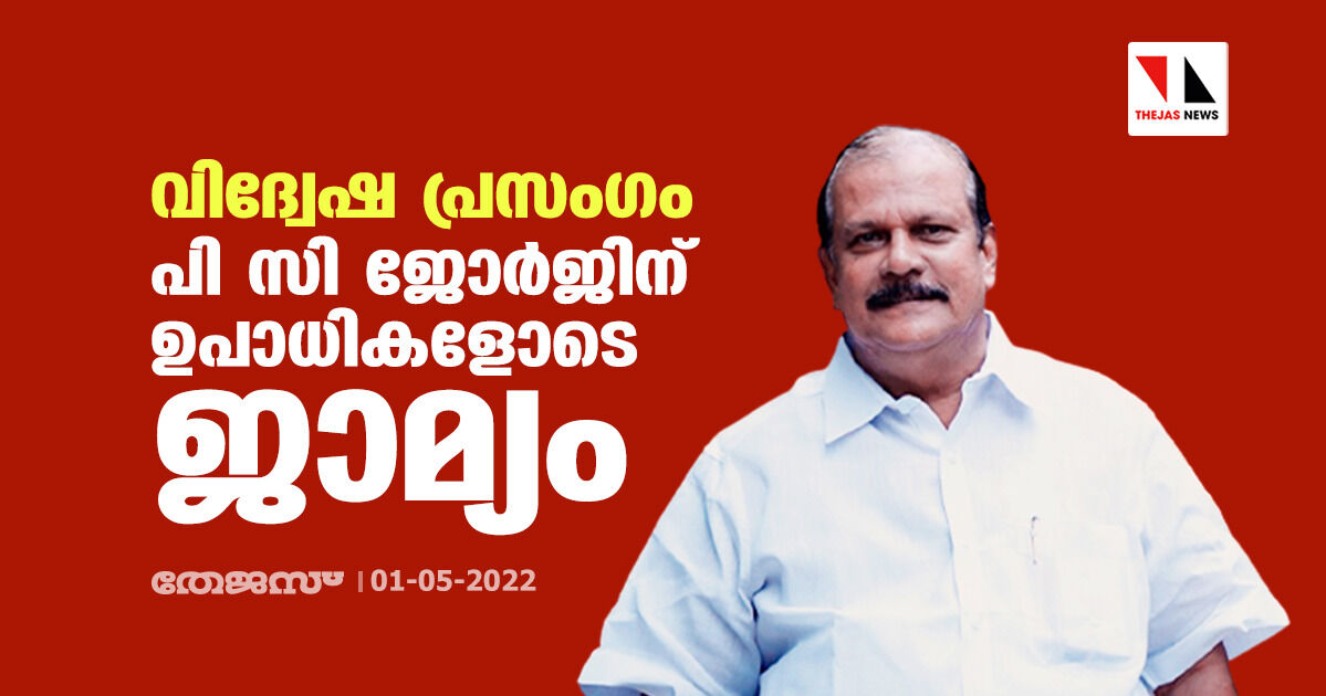 വിദ്വേഷ പ്രസംഗം; പി സി ജോര്ജിന് ഉപാധികളോടെ ജാമ്യം