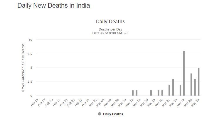 മധ്യപ്രദേശിലെ ഉജ്ജയ്നിയിൽ വെള്ളിയാഴ്ച മരിച്ച മുപ്പത്തെട്ടുകാരന് കൊവിഡ് സ്ഥിരീകരിച്ചു. ഇതോടെയാണ് രാജ്യത്ത് മരണം 35 ആയി ഉയർന്നത്. പുനയിൽ അമ്പത്തിരണ്ടുകാരനും മുംബൈയിൽ എൺപതുകാരനുമാണ് മരിച്ചത്. മഹാരാഷ്ട്രയിൽ മരണം പത്തായി. പഞ്ചാബിലെ ലുധിയാനയിൽ 42കാരിയാണ് മരിച്ചത്. സംസ്ഥാനത്തെ മൂന്നാമത്തെ മരണമാണിത്. ഗുജറാത്തിൽ ചികിത്സയിലുണ്ടായിരുന്ന നാൽപ്പത്തഞ്ചുകാരനും പശ്ചിമ ബംഗാളിൽ കാളിംപോങിൽ നാൽപ്പത്തിനാലുകാരിയുമാണ് മരിച്ചത്.