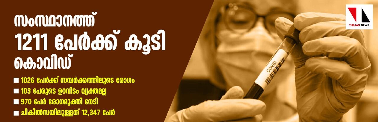 സംസ്ഥാനത്ത് ഇന്ന് 1211 പേര്ക്ക് കൊവിഡ്: 1026 പേര്ക്ക് സമ്പര്ക്കത്തിലൂടെ രോഗം; 103 പേരുടെ ഉറവിടം വ്യക്തമല്ല