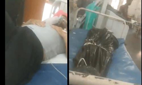 കറുത്ത പ്ലാസ്റ്റിക് കവറിട്ട് പൊതിഞ്ഞ് വാര്ഡിലെ കട്ടിലില് തന്നെ കിടത്തിയ നിലയിലാണ് മൃതദേഹങ്ങള്. തൊട്ടടുത്ത് തന്നെ രോഗികളേയും രോഗികള്ക്ക് കൂട്ടിരിക്കുന്നവരേയും കാണാം.