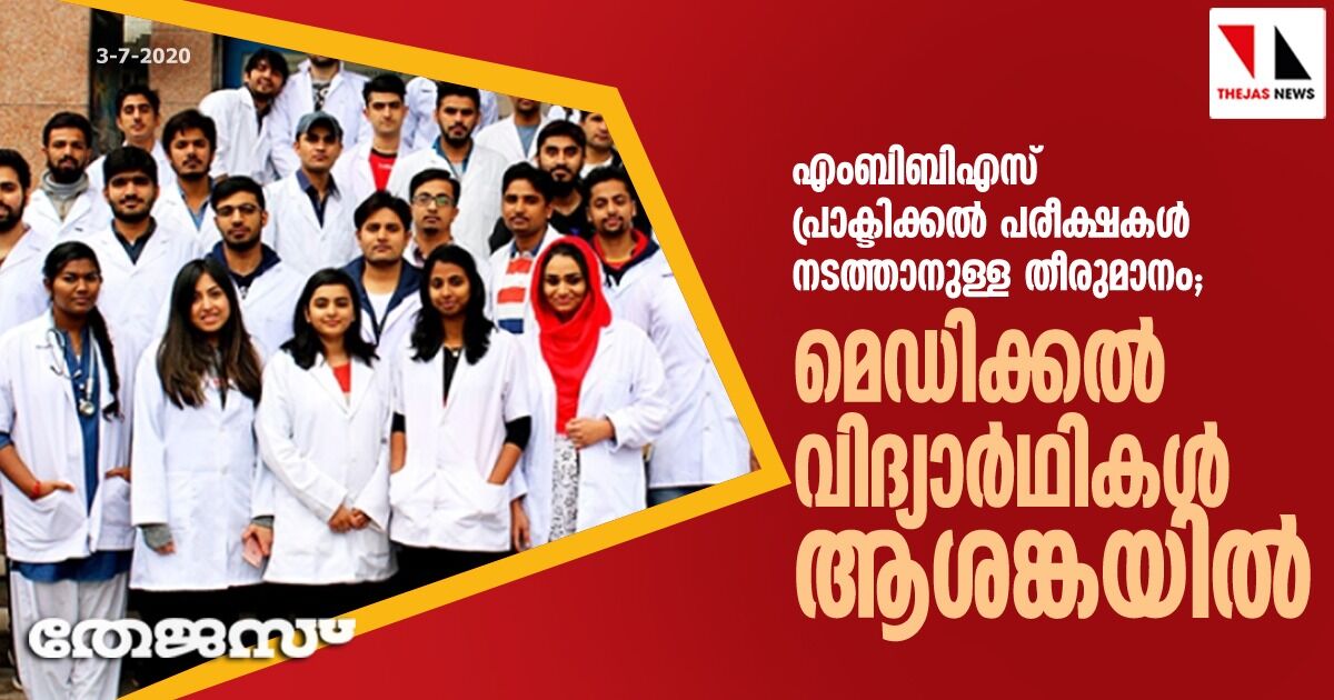 എംബിബിഎസ് പ്രാക്ടിക്കല് പരീക്ഷകള് നടത്താനുള്ള തീരുമാനം; മെഡിക്കല് വിദ്യാര്ഥികള് ആശങ്കയില്