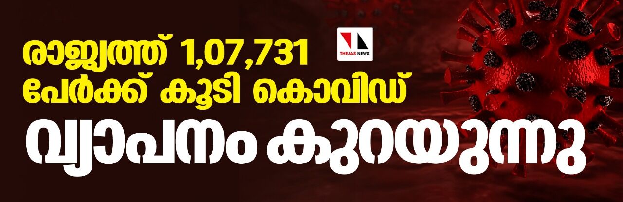 ഇന്ത്യയില് 1,07,731 പേര്ക്ക് കൂടി കൊവിഡ്; വ്യാപനം കുറയുന്നു