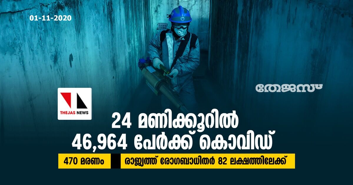 24 മണിക്കൂറില് 46,964 പേര്ക്ക് കൊവിഡ്; 470 മരണം; രാജ്യത്ത് രോഗബാധിതര് 82 ലക്ഷത്തിലേക്ക്