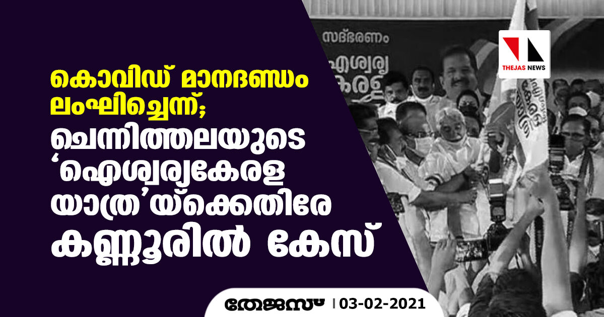 കൊവിഡ് മാനദണ്ഡം ലംഘിച്ചെന്ന്; ചെന്നിത്തലയുടെ 'ഐശ്വര്യകേരള യാത്ര'യ്ക്കെതിരേ കണ്ണൂരില് കേസ്