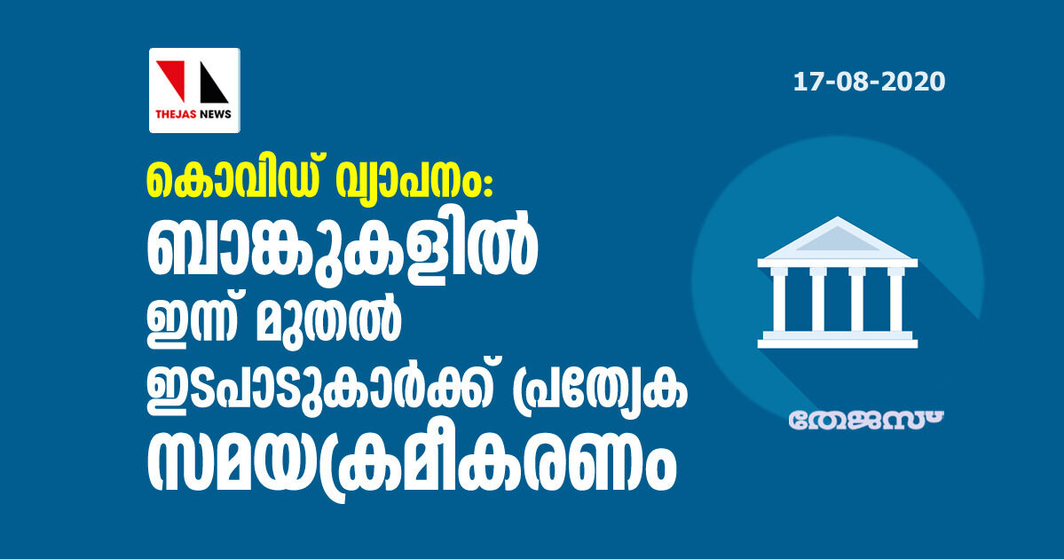 കൊവിഡ് വ്യാപനം: ബാങ്കുകളില് ഇന്ന് മുതല് ഇടപാടുകാര്ക്ക് പ്രത്യേക സമയക്രമീകരണം