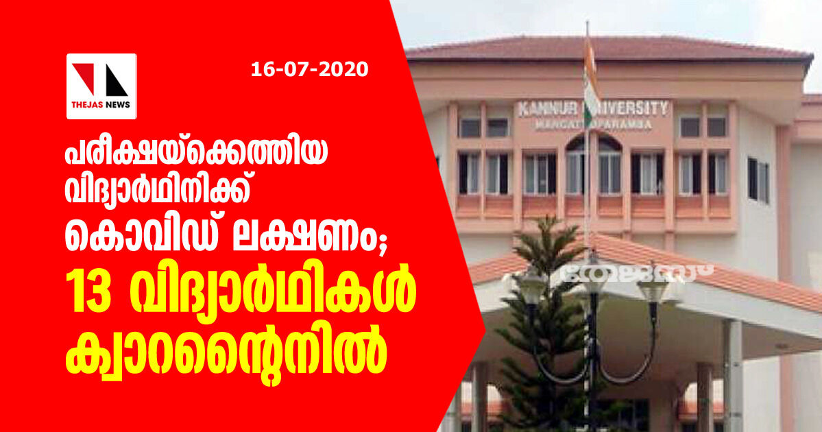 പരീക്ഷയ്ക്കെത്തിയ വിദ്യാര്ഥിനിക്ക് കൊവിഡ് ലക്ഷണം; 13 വിദ്യാര്ഥികള് ക്വാറന്റൈനില്