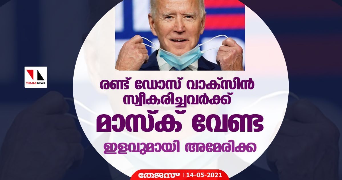 രണ്ട് ഡോസ് വാക്സിന് സ്വീകരിച്ചവര്ക്ക് മാസ്ക് വേണ്ട; ഇളവുമായി അമേരിക്ക