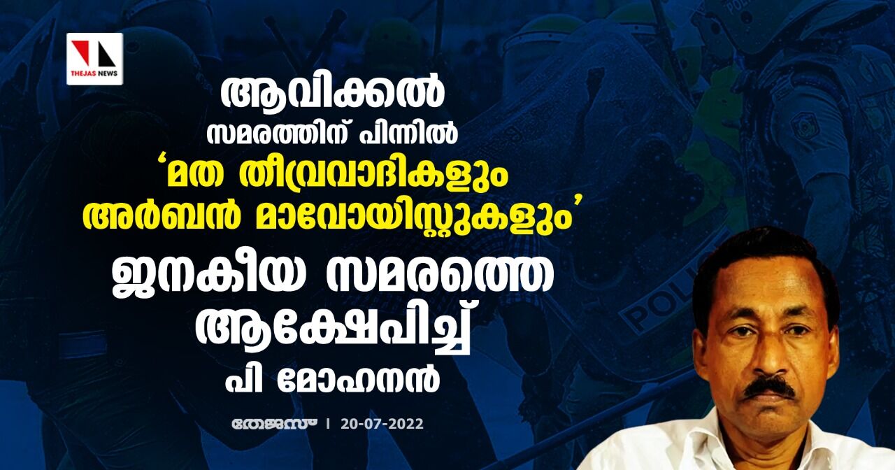 ആവിക്കൽ സമരത്തിന് പിന്നിൽ മത തീവ്രവാദികളും അർബന് മാവോയിസ്റ്റുകളും; ജനകീയ സമരത്തെ ആക്ഷേപിച്ച് പി മോഹനൻ