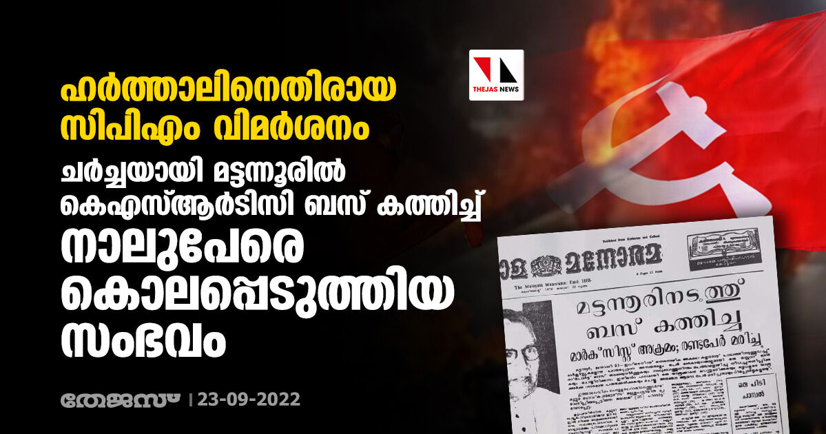 ഹർത്താലിനെതിരായ സിപിഎം വിമർശനം; ചർച്ചയായി മട്ടന്നൂരിൽ കെഎസ്ആർടിസി ബസ് കത്തിച്ച് നാലുപേരെ കൊലപ്പെടുത്തിയ സംഭവം