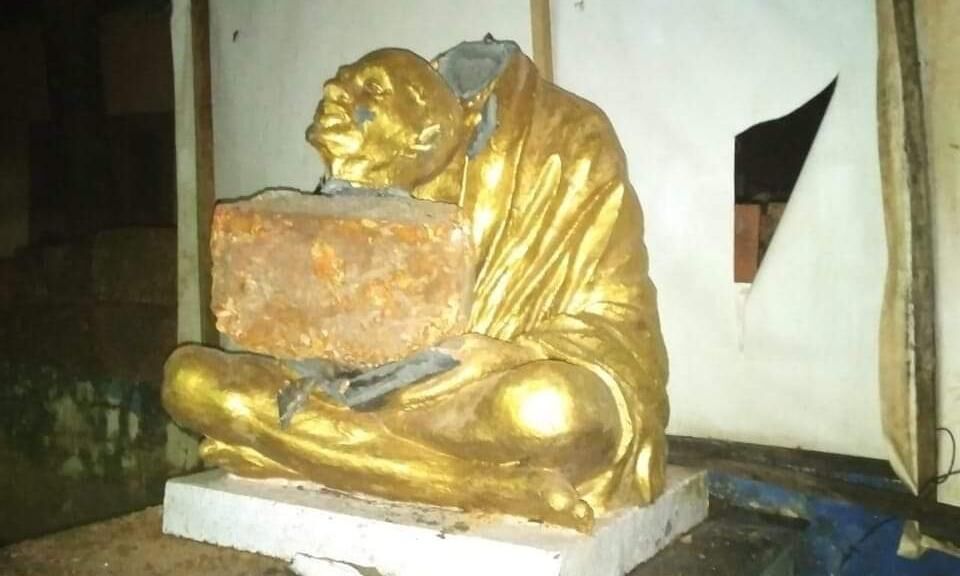പയ്യന്നൂരിൽ കോൺഗ്രസ് ഓഫിസ് തകർത്ത് ഗാന്ധി പ്രതിമയുടെ തലയറുത്ത് സിപിഎം