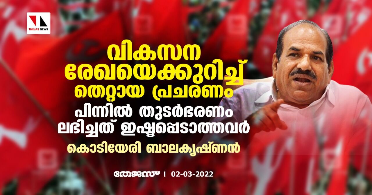 വികസന രേഖയെക്കുറിച്ച് തെറ്റായ പ്രചരണം; പിന്നില് തുടര്ഭരണം ലഭിച്ചത് ഇഷ്ടപ്പെടാത്തവര്: കൊടിയേരി ബാലകൃഷ്ണന്
