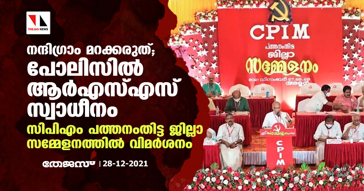 നന്ദിഗ്രാം മറക്കരുത്; പോലിസിൽ ആർഎസ്എസ് സ്വാധീനം: സിപിഎം പത്തനംതിട്ട ജില്ലാ സമ്മേളനത്തിൽ വിമർശനം