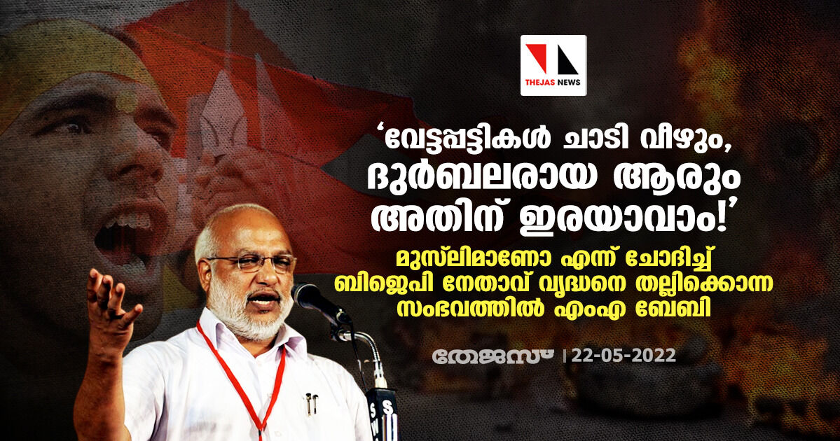 'വേട്ടപ്പട്ടികള് ചാടി വീഴും, ദുര്ബലരായ ആരും അതിന് ഇരയാവാം!'; മുസ്ലിമാണോ എന്ന് ചോദിച്ച് ബിജെപി നേതാവ് വൃദ്ധനെ തല്ലിക്കൊന്ന സംഭവത്തില് എംഎ ബേബി