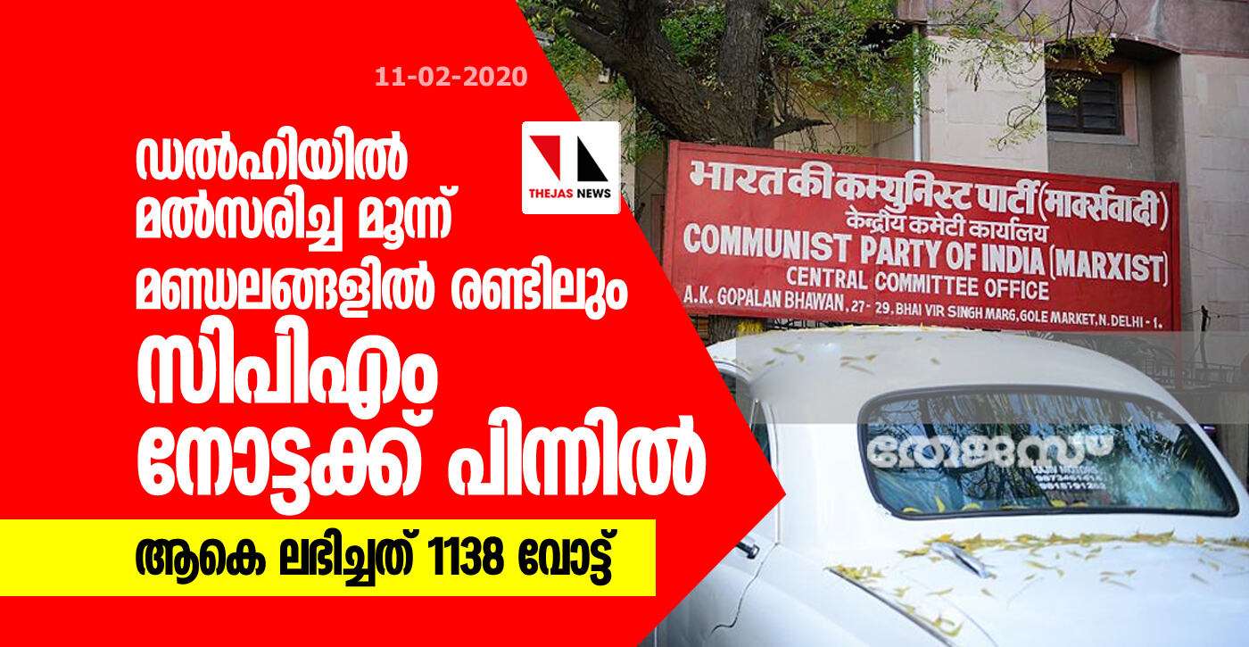 ഡല്ഹിയില് മത്സരിച്ച മൂന്ന് മണ്ഡലങ്ങളില് രണ്ടിലും സിപിഎം നോട്ടക്ക് പിന്നില് -ആകെ ലഭിച്ചത് 1138 വോട്ട്