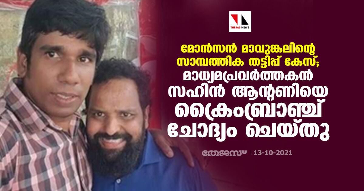 മോൻസൻ മാവുങ്കലിന്റെ സാമ്പത്തിക തട്ടിപ്പ് കേസ്; മാധ്യമപ്രവർത്തകൻ സഹിൻ ആന്റണിയെ ക്രൈംബ്രാഞ്ച് ചോദ്യം ചെയ്തു