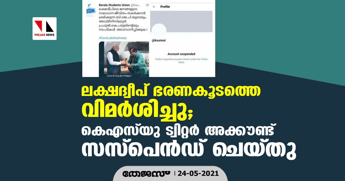 ലക്ഷദ്വീപ് ഭരണകൂടത്തെ വിമര്ശിച്ചു; കെഎസ്യു ട്വിറ്റര് അക്കൗണ്ട് സസ്പെന്ഡ് ചെയ്തു