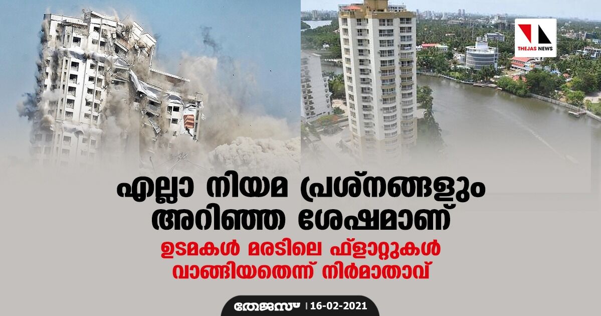 എല്ലാ നിയമ പ്രശ്നങ്ങളും അറിഞ്ഞ ശേഷമാണ് ഉടമകള് മരടിലെ ഫ്ളാറ്റുകള് വാങ്ങിയതെന്ന് നിര്മാതാവ്