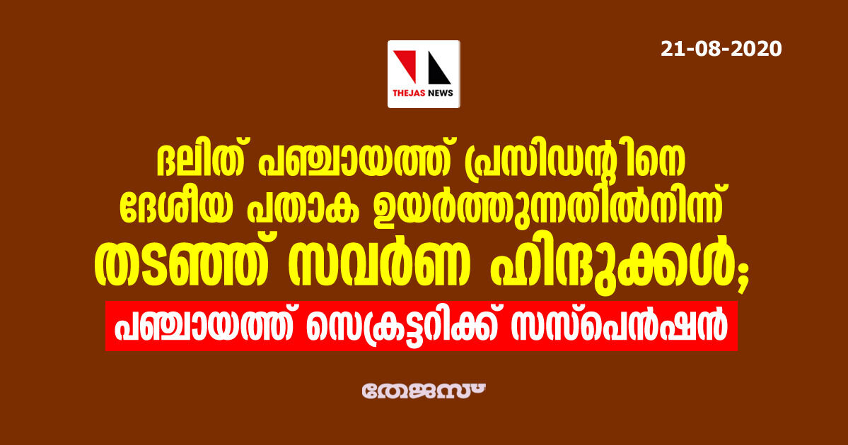 ദലിത് പഞ്ചായത്ത് പ്രസിഡന്റിനെ ദേശീയ പതാക ഉയര്ത്തുന്നതില്നിന്ന് തടഞ്ഞ് സവര്ണ ഹിന്ദുക്കള്; പഞ്ചായത്ത് സെക്രട്ടറിക്ക് സസ്പെന്ഷന്