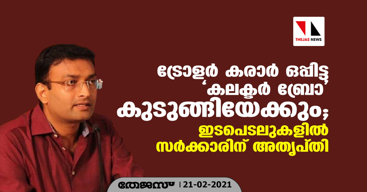 ട്രോളര് കരാര് ഒപ്പിട്ട 'കലക്ടര് ബ്രോ' കുടുങ്ങിയേക്കും; ഇടപെടലുകളില് സര്ക്കാരിന് അതൃപ്തി