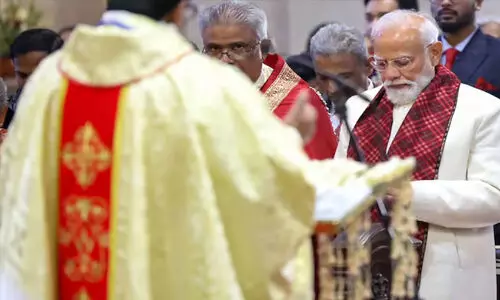 '' ഹിന്ദുത്വ വര്ഗീയവാദികള് ക്രിസ്മസ് അലങ്കോലമാക്കിയപ്പോള് പ്രധാനമന്ത്രി പള്ളിക്കുള്ളില് പ്രാര്ഥിക്കാനെത്തിയത് ഒരു പക്ഷേ വിദേശരാജ്യങ്ങളിലെ ഭരണാധികാരികളെ കാണിക്കാനാകും..'' ദീപിക മുഖപ്രസംഗം