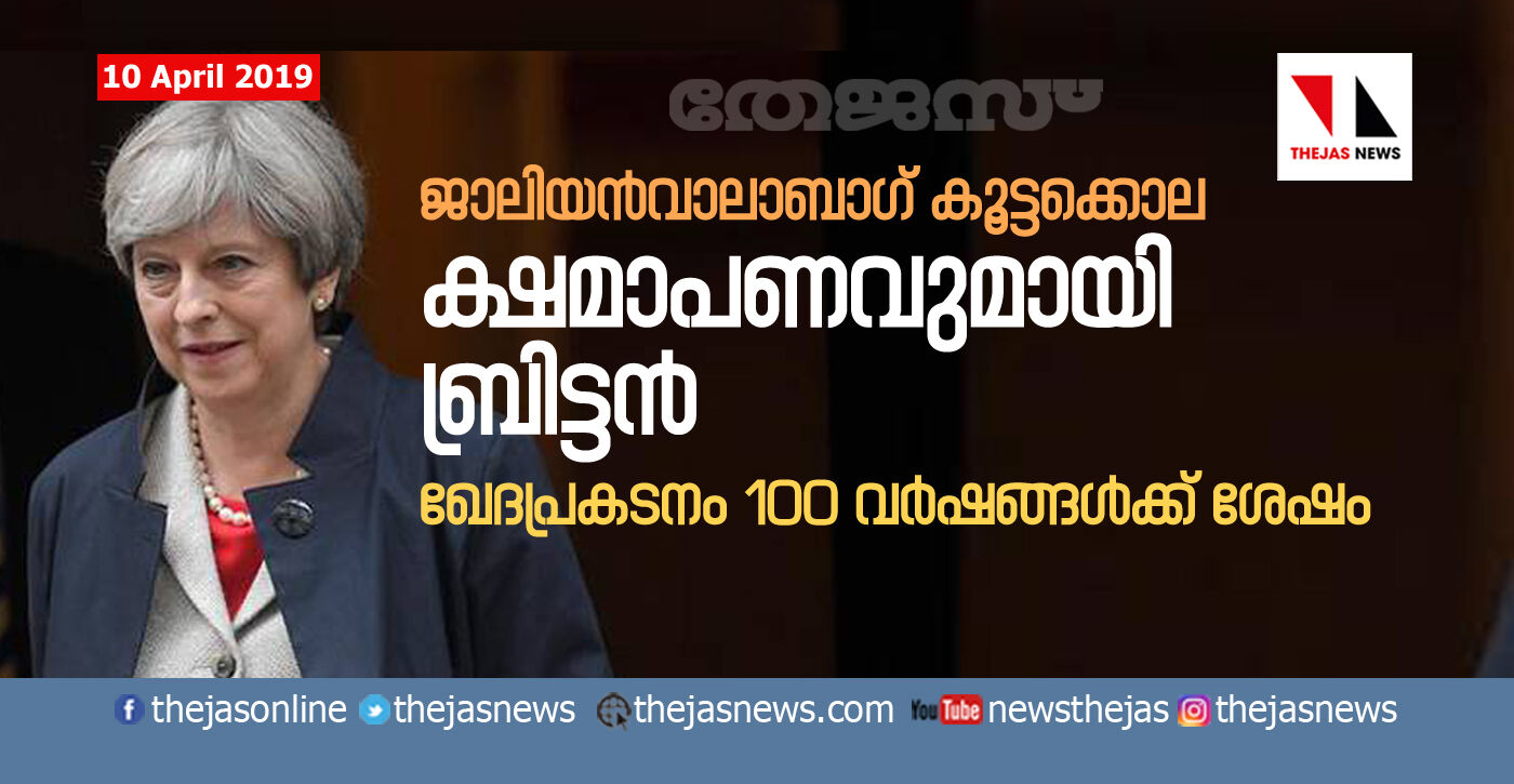 തെരേസ മേ പാര്ലമെന്റില് പറഞ്ഞു.1919 ഏപ്രില് 13നാണ് ജാലിയന്വാലാബാഗില് സ്ത്രീകളും കുട്ടികളും അടക്കമുള്ള ആയിരക്കണക്കിന് പേര് ജനറല് ഡയറിന്റെ നേതൃത്വത്തിലുള്ള ബ്രിട്ടീഷ് പട്ടാളത്തിന്റെ വെടിയേറ്റ് മരിച്ചത്. എന്നാല് 400 പേര് മരിച്ചുവെന്നാണ് ബ്രിട്ടീഷ് രേഖകളില് ഉള്ളത്.2013ല് ഇന്ത്യ സന്ദര്ശിച്ച മുന് ബ്രിട്ടീഷ് പ്രധാനമന്ത്രി ഡേവിഡ് കാമറോണ് കൂട്ടക്കൊലയെ ലജ്ജാകരമെന്ന് വിശേഷിപ്പിച്ചിരുന്നു. എന്നാല് സംഭവത്തില് ഖേദപ്രകടനം നടത്തിയിരുന്നില്ല.