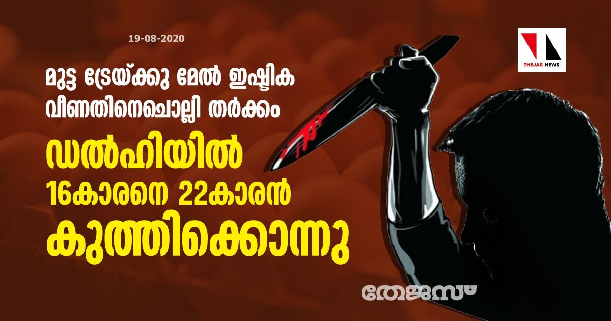 മുട്ട ട്രേയ്ക്കു മേല് ഇഷ്ടിക വീണതിനെചൊല്ലി തര്ക്കം; ഡല്ഹിയില് 16കാരനെ 22കാരന് കുത്തിക്കൊന്നു