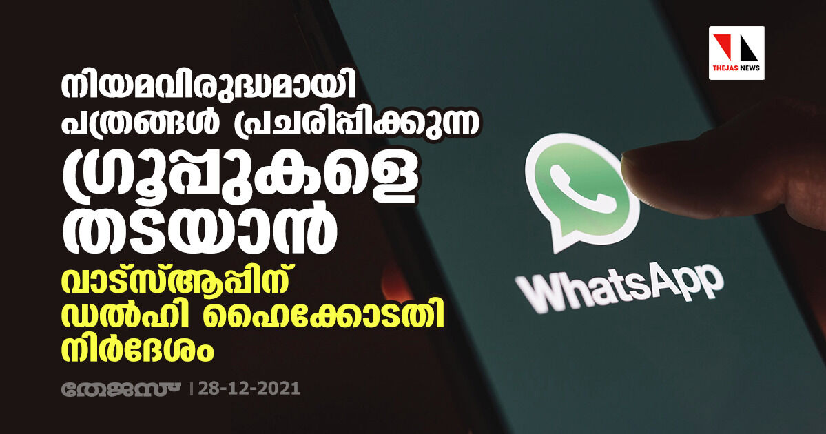 നിയമവിരുദ്ധമായി പത്രങ്ങൾ പ്രചരിപ്പിക്കുന്ന ഗ്രൂപ്പുകളെ തടയാൻ വാട്സ്ആപ്പിന് ഡൽഹി ഹൈക്കോടതി നിർദേശം