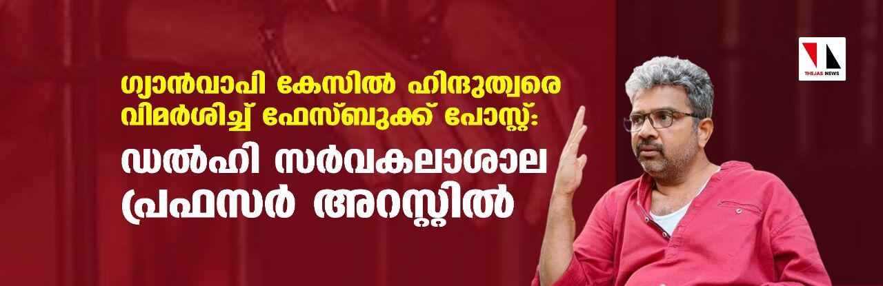 ഗ്യാന്വാപി കേസില് ഹിന്ദുത്വരെ വിമര്ശിച്ച് ഫേസ്ബുക്ക് പോസ്റ്റ്: ഡല്ഹി സര്വകലാശാല പ്രഫസര് അറസ്റ്റില്