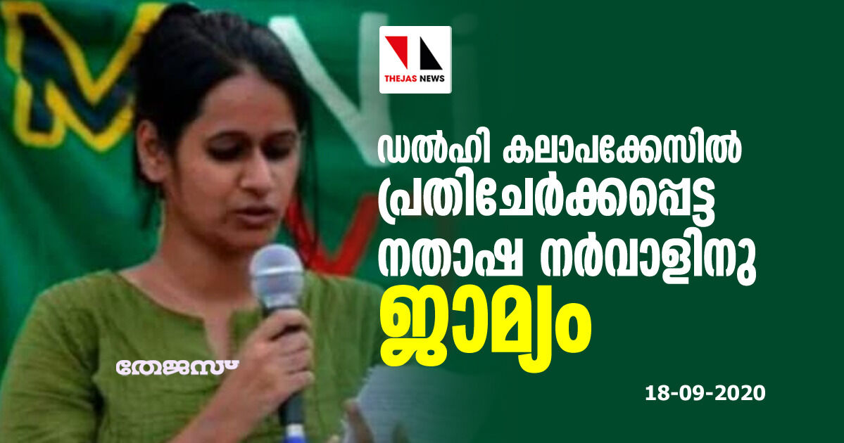 ഡല്ഹി കലാപക്കേസില് പ്രതി ചേര്ക്കപ്പെട്ട നതാഷ നര്വാളിനു ജാമ്യം