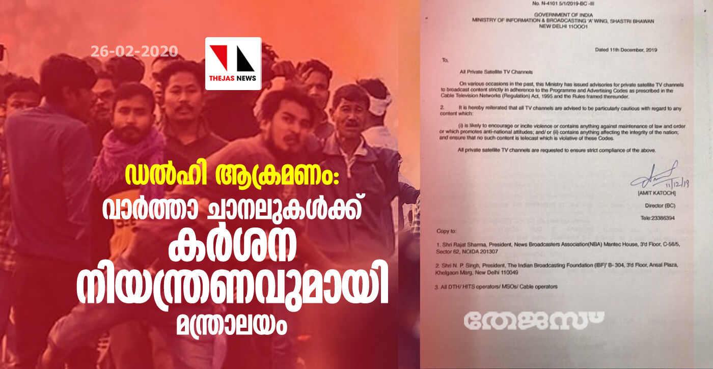 ഡല്ഹി ആക്രമണം: വാര്ത്താ ചാനലുകള്ക്ക് കര്ശന നിയന്ത്രണവുമായി മന്ത്രാലയം